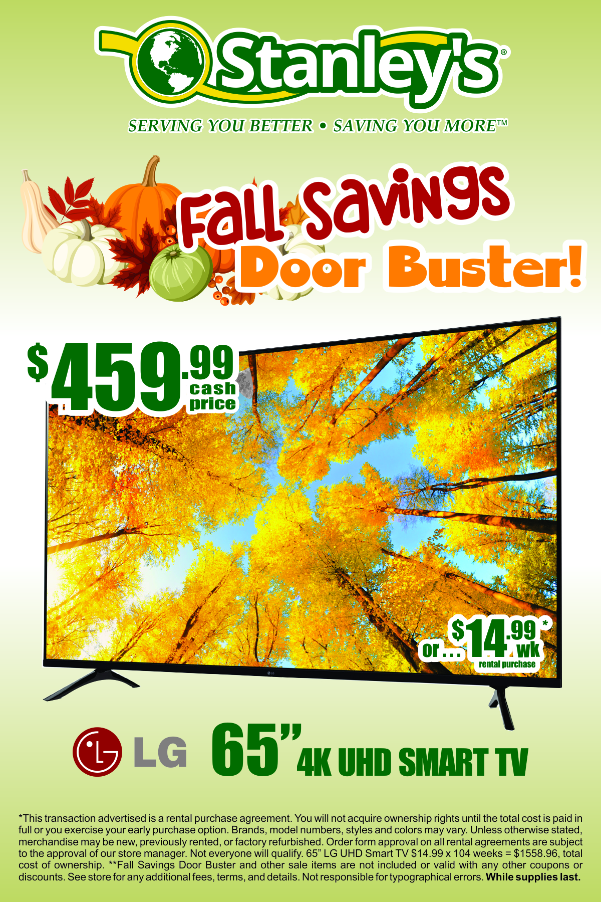 'Prices shown are retail. If you choose to use any form of financing, or our in-house rent-to-own program, your total cost will be more. See store for details. *Qualifications and/or financing through Koalafi® are subject to Koalafi® policies and procedures. See store for details. **These benefits and offers are exclusive to our in-house rent-to-own program. All rent-to-own order forms are subject to certain qualifications and our store manager's approval. See store for any additional details, fees, and terms. Brands and models may vary. Quantities are limited. All offers are while supplies last. • Copyright © 2025 Stanley's®